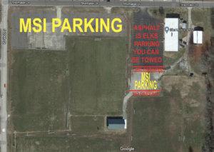 - The asphalt parking lot is the property of the Elks Lodge and not MSI. Please be aware they also have customers and that is their parking lot. You are at risk of being towed, at your own expense, when parking on the asphalt.